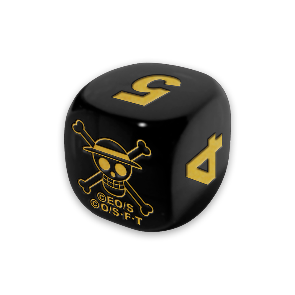 - 4 6-Sided Dice – A set of four dice with a gold and black finish, each marked with the One Piece skull insignia on one face.